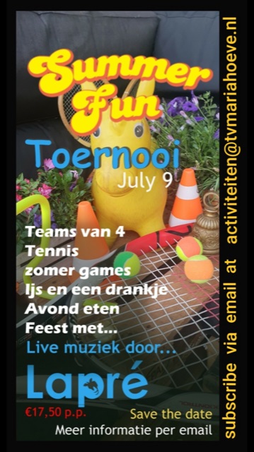 Schrijf je uiterlijk dinsdag 5 juli in via activiteiten@tvmariahoeve.nl